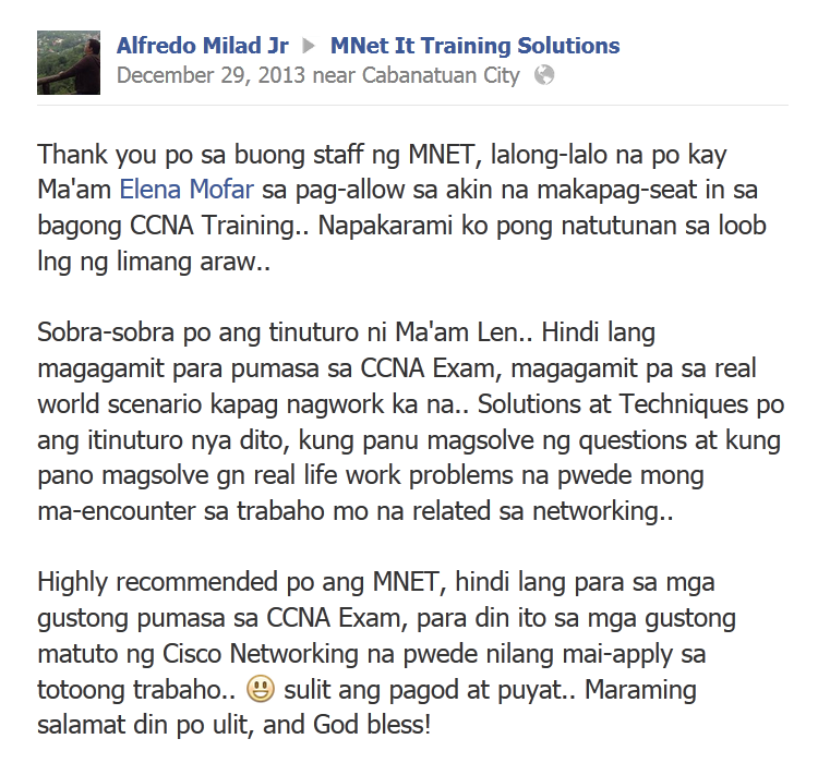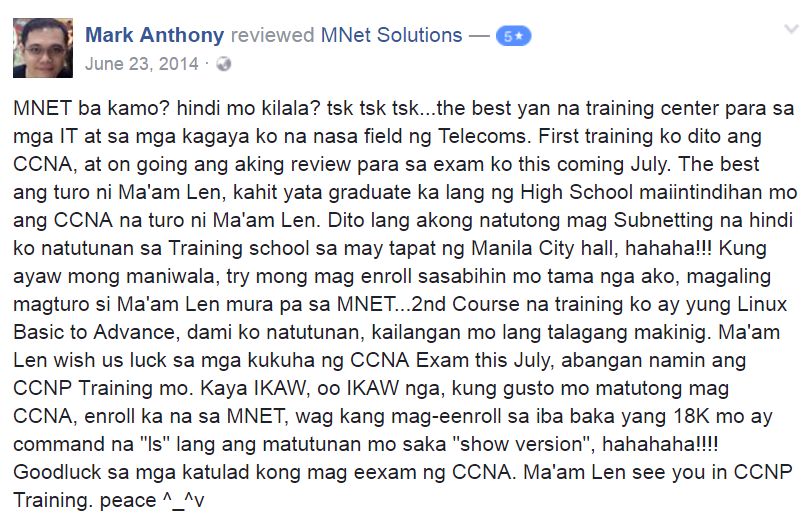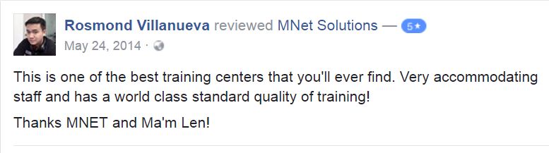 You can view our innumerable feedbacks from our previous students, you can search around the internet for previous student comments about the training that we offer, you can join different forums and ask about us. We don't claim we're the best, our previous students will say it about us.