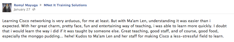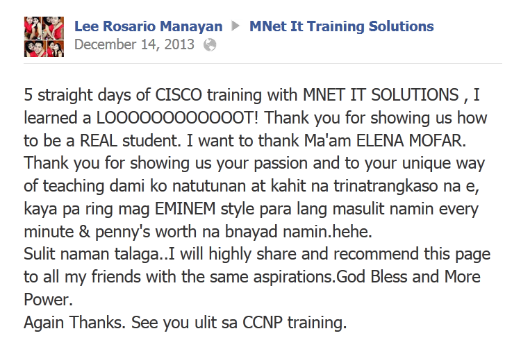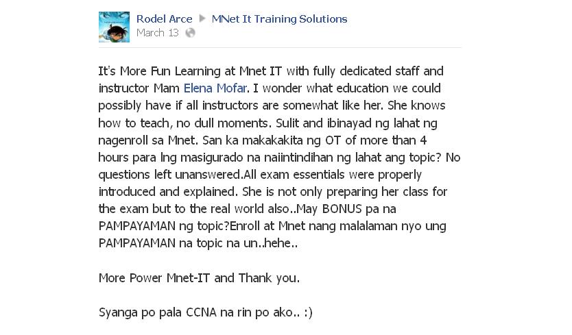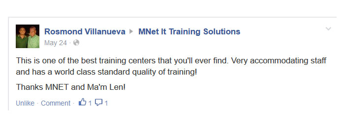 You can view our innumerable feedbacks from our previous students, you can search around the internet for previous student comments about the training that we offer, you can join different forums and ask about us. We don't claim we're the best, our previous students will say it about us.